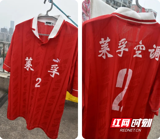 红网时刻新闻5月8日讯(记者 符洹雨)“小伙子,你来看看,同现今的中超球衣相比,我们那时候穿的球衣都蛮朴素。”在长沙东塘某小区的天台上,前中国国青队球员、湖南足球名宿程坚,兴致勃勃地向来访的红网体育记者展示了自己珍藏的球衣。