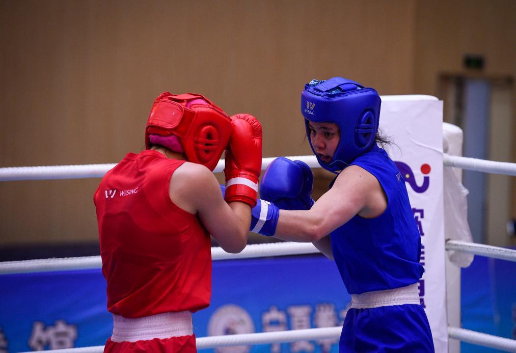 2018年12月28日,云南队选手张桂玲(右)与江苏队选手郑梦婷在60公斤级决赛中。最终,张桂玲以3:2战胜郑梦婷,夺得2018年全国女子拳击冠军赛冠军。新华社发(冯开华摄)