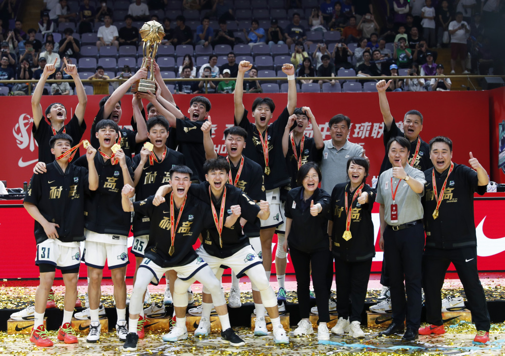 当日,在2023-2024赛季耐克中国高中篮球联赛全国总决赛中,湖南地质中学队86比66战胜青岛六十七中队,获得男子组冠军。