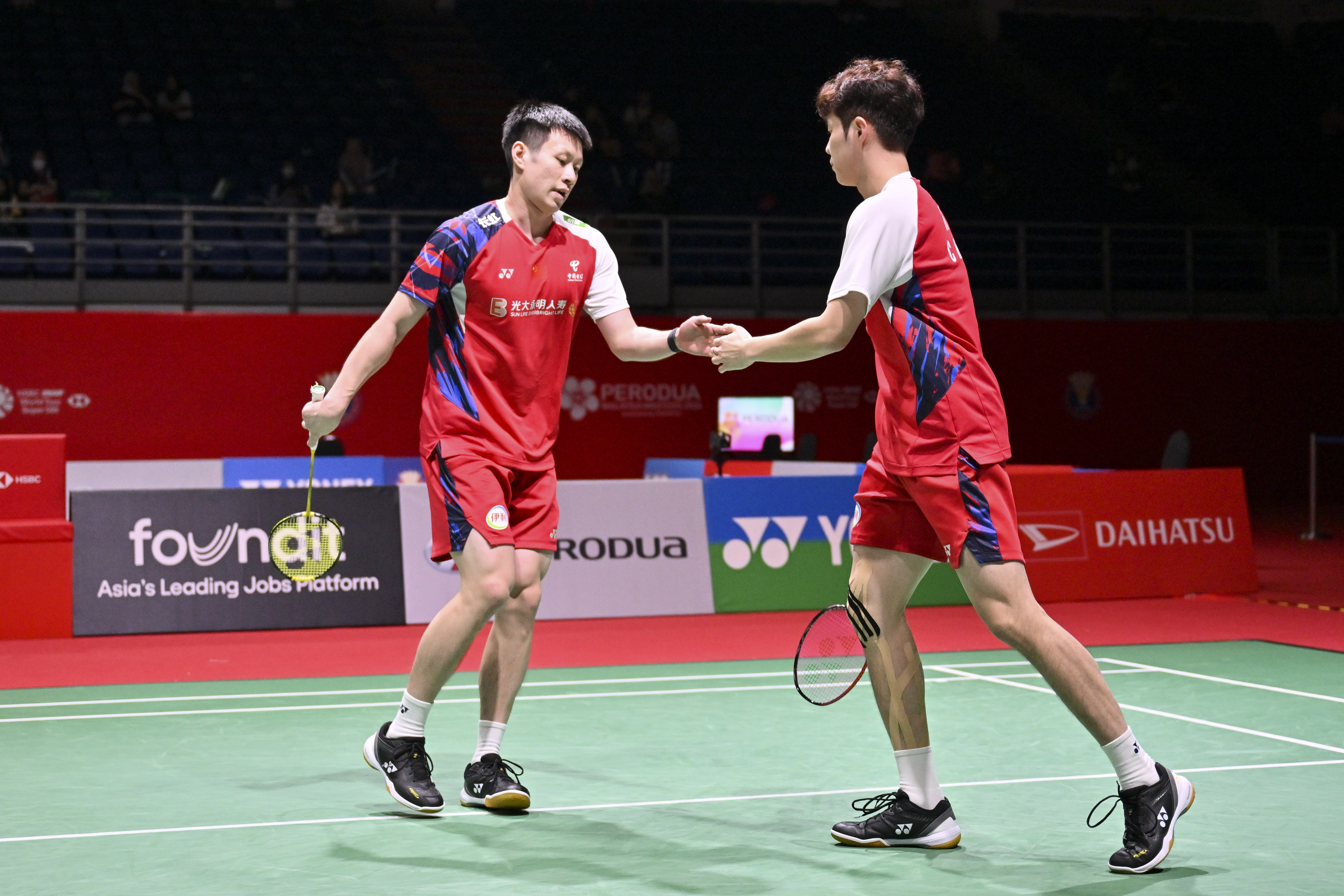 男双比赛中,中国队组合何济霆/任翔宇以21:11、21:9轻松战胜印度组合加拉加/普拉蒂克,他们的队友陈柏阳/刘毅则以1:2不敌马来西亚组合谢定峰/苏伟译,遗憾止步。