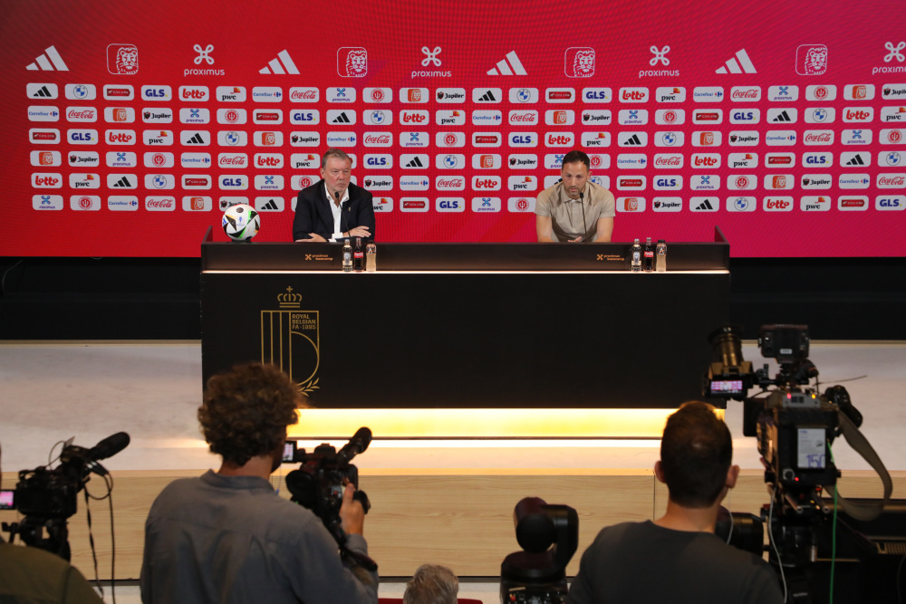 当日,比利时国家男子足球队在皇家比利时足球协会总部举行新闻发布会,主教练特德斯科公布参加2024年欧锦赛的国家队大名单。