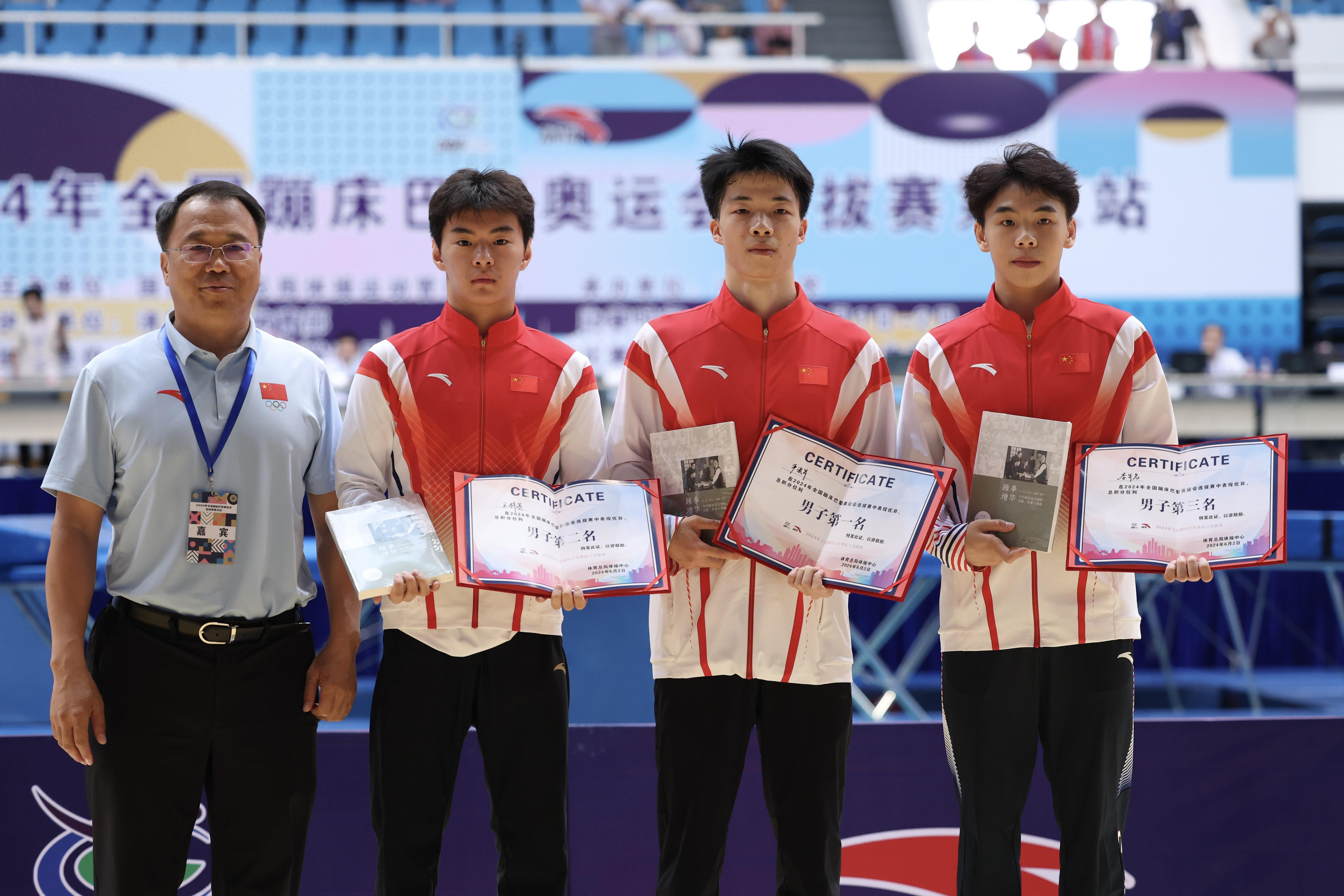 根据《蹦床项目巴黎奥运会参赛选拔办法》,在五站奥运选拔赛全部结束后,将选取每名运动员最高的三站积分,根据积分相加之和排序,进行奥运会提名报名。