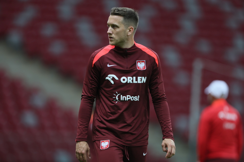 6月2日,波兰队球员杰林斯基在训练中。新华社/欧新
