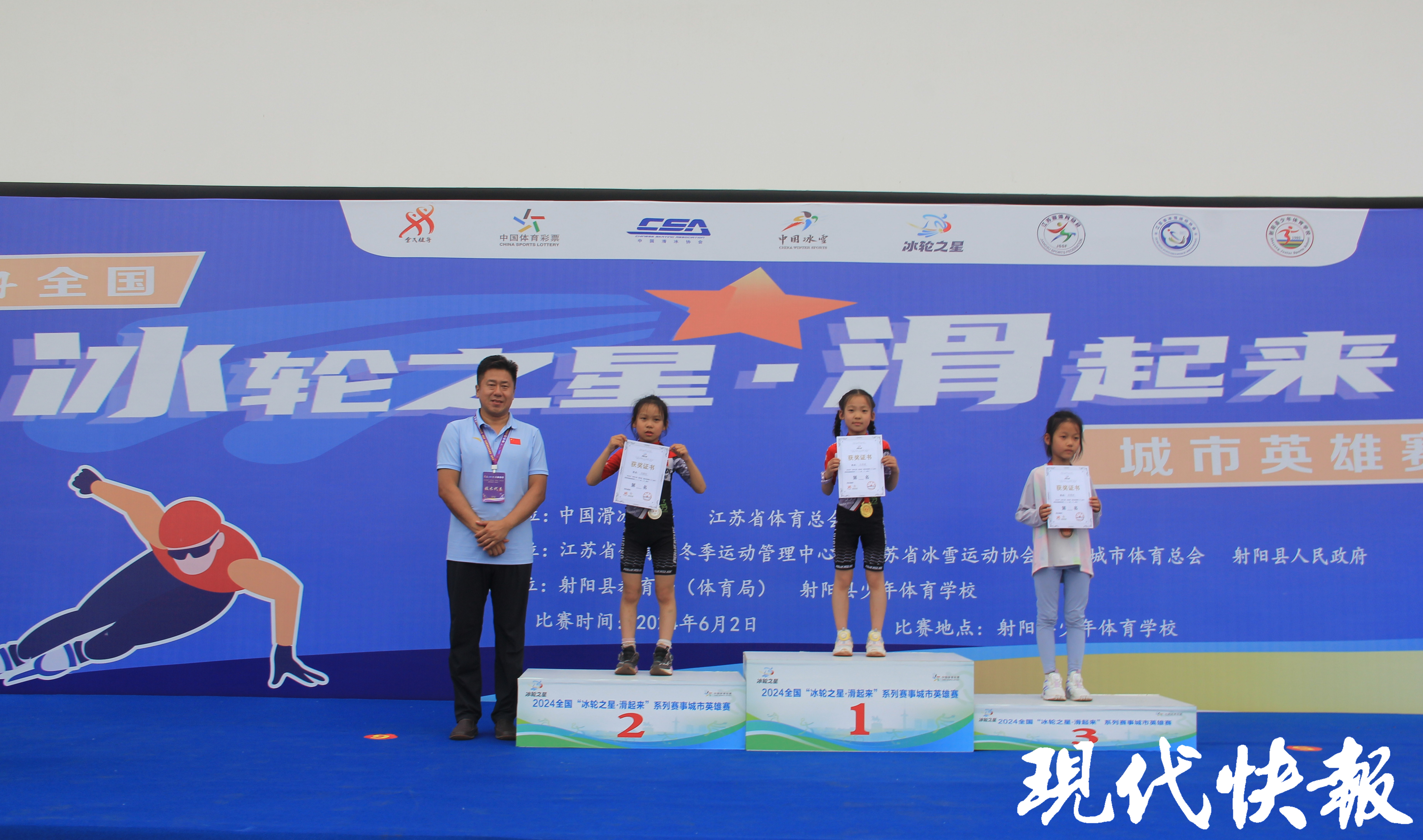 现代快报讯(记者王卫)6月2日,2024全国“冰轮之星·滑起来”系列赛事活动—城市英雄赛(盐城站)在盐城射阳县少年体育学校开赛。本次比赛吸引了11支队伍的210名运动员参与,根据年龄划分为8个组别,每个组别划分500米、1000米、1500米等8个项目。