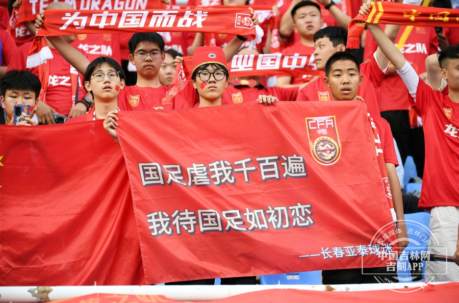 6月6日,在沈阳奥林匹克体育中心体育场进行的2026年美加墨世界杯亚洲区预选赛36强赛中,中国队主场迎战泰国队,现场6万球迷为中国队加油助威。