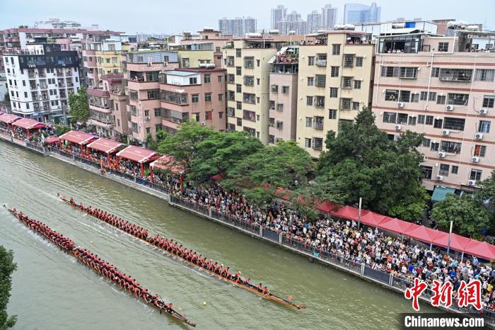 中新社广州6月7日电题:羊城百舸争流珠江畔龙舟竞渡迎端午