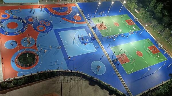 田径场、篮球场,门球场、健身舞场、乒乓球场、健身器材区、体育馆(羽毛球)等。