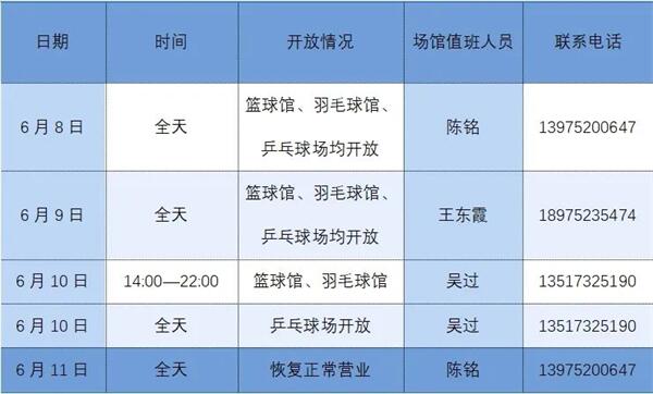 馆外、田径场、足球场、笼式足球场等体育场地及设施,端午节三天均照常全天对外免费开放。