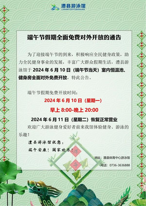 端午将至,为满足广大市民的健身需求,鼎城区全民健身中心将继续做好2024年端午节场馆免费低收费开放工作,具体情况如下: