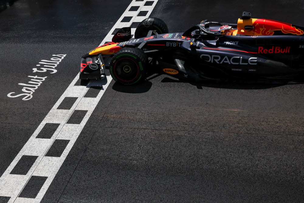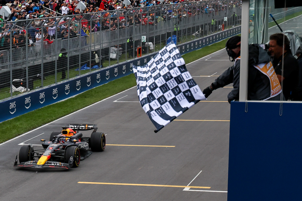 6月9日,马克斯·维斯塔潘在比赛中率先冲线。新华社发(钱俊摄)