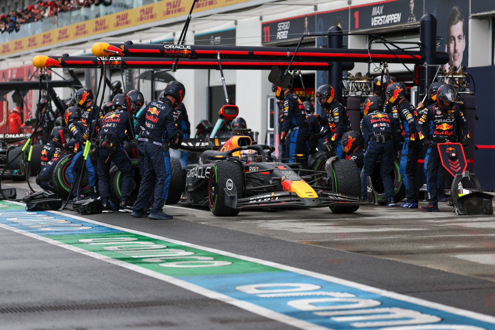 6月9日,马克斯·维斯塔潘在比赛中进站。新华社发(钱俊摄)