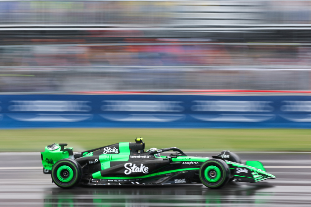 6月9日,索伯车队中国车手周冠宇驾驶赛车在比赛中,他最终获得第15名。新华社发(钱俊摄)