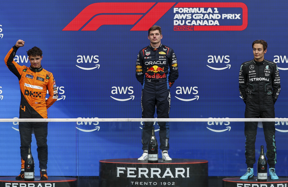 当日,2024赛季世界一级方程式赛车锦标赛(F1)加拿大大奖赛正赛在加拿大蒙特利尔举行。红牛车队荷兰车手马克斯·维斯塔潘以1小时45分47秒927的成绩夺冠,迈凯伦车队英国车手兰多·诺里斯和梅赛德斯车队英国车手乔治·拉塞尔分获亚军和季军。