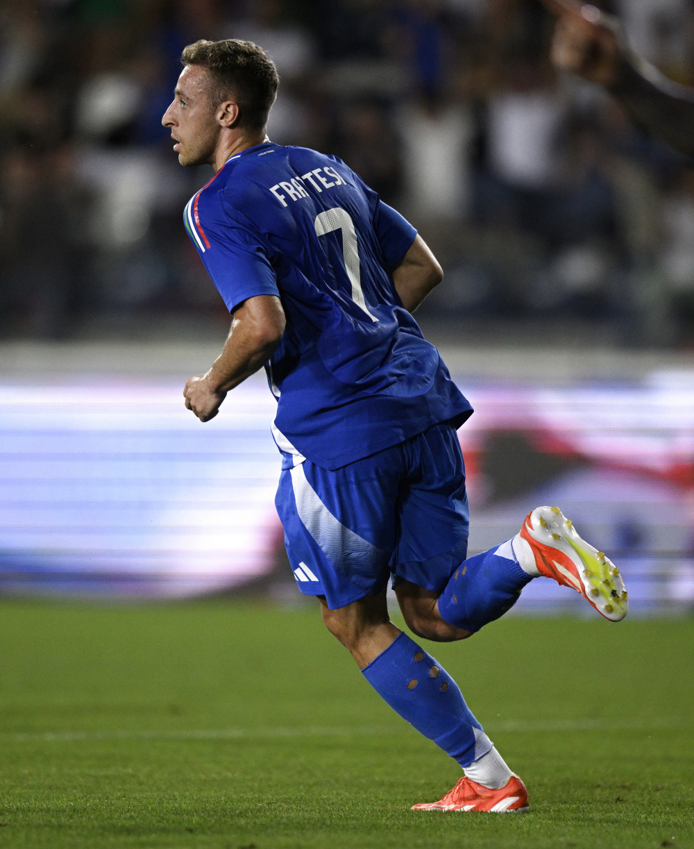 6月9日,意大利队球员弗拉泰西庆祝进球。新华社发(阿尔贝托·林格利亚摄)
