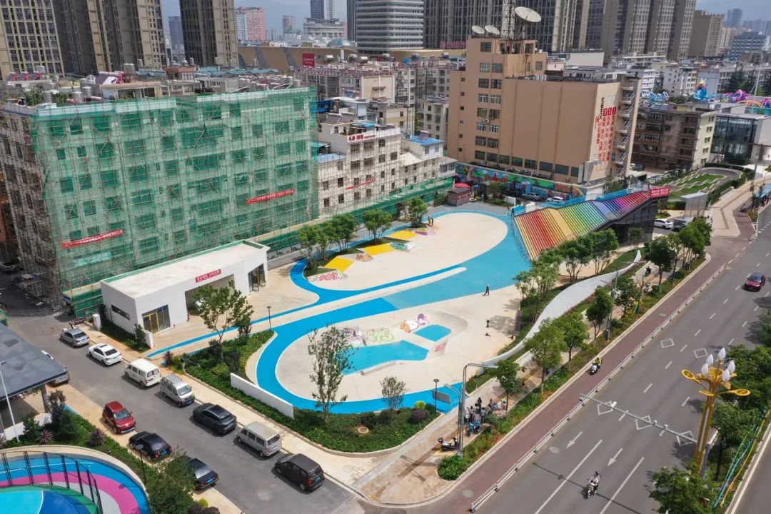 过去,滑板公园项目地仅作为城市绿地使用,土地利用效率低。依托老旧小区改造,红塔区建设集滑板运动、休闲娱乐、文化交流等功能于一体的滑板公园,既满足了滑板爱好者和周边居民的运动需求,又填补了红塔区专业性运动公园的空白,是红塔区坚持以人民为中心、推动老旧小区改造实现共建共治共享共美的生动体现。此外,滑板公园临近小庙街、万达广场、市体育馆等核心地带,独特的“运动+商业”模式,将对中心城区商业区进行有效补充,进一步激发城市活力。