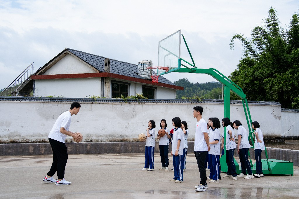 在江西过埠中学篮球场,CBA广东宏远俱乐部运动员杜润旺和来自江西财经大学的支教志愿者张琳琳各分一队,带领同学们进行了一场3V3挑战赛。面对难得的与职业球员同台竞技的机会,过埠中学的同学们个个斗志昂扬,场下的加油声也不绝于耳。