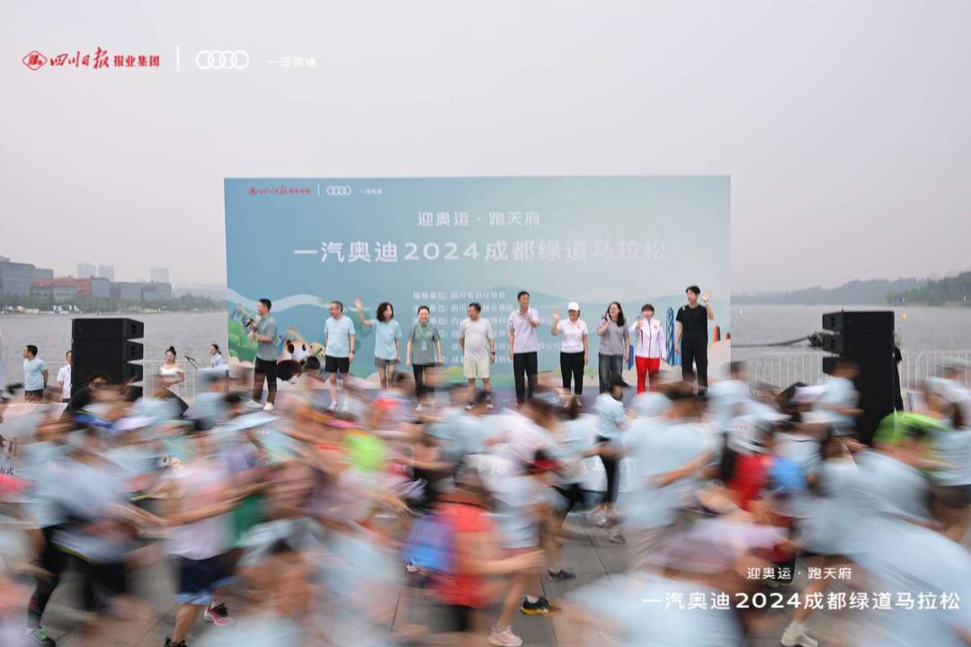 6月16日,经过前一夜淅淅沥沥的细雨,清晨的天气有些微凉,而天府“绿肺”——兴隆湖畔却热情似火。由四川省田径协会指导,四川日报报业集团主办,封面科技承办,四川天府新区商会、成都天府新区投资集团有限公司协办的“迎奥运·跑天府 一汽奥迪2024成都绿道马拉松”在兴隆湖湖滨广场鸣枪开跑。