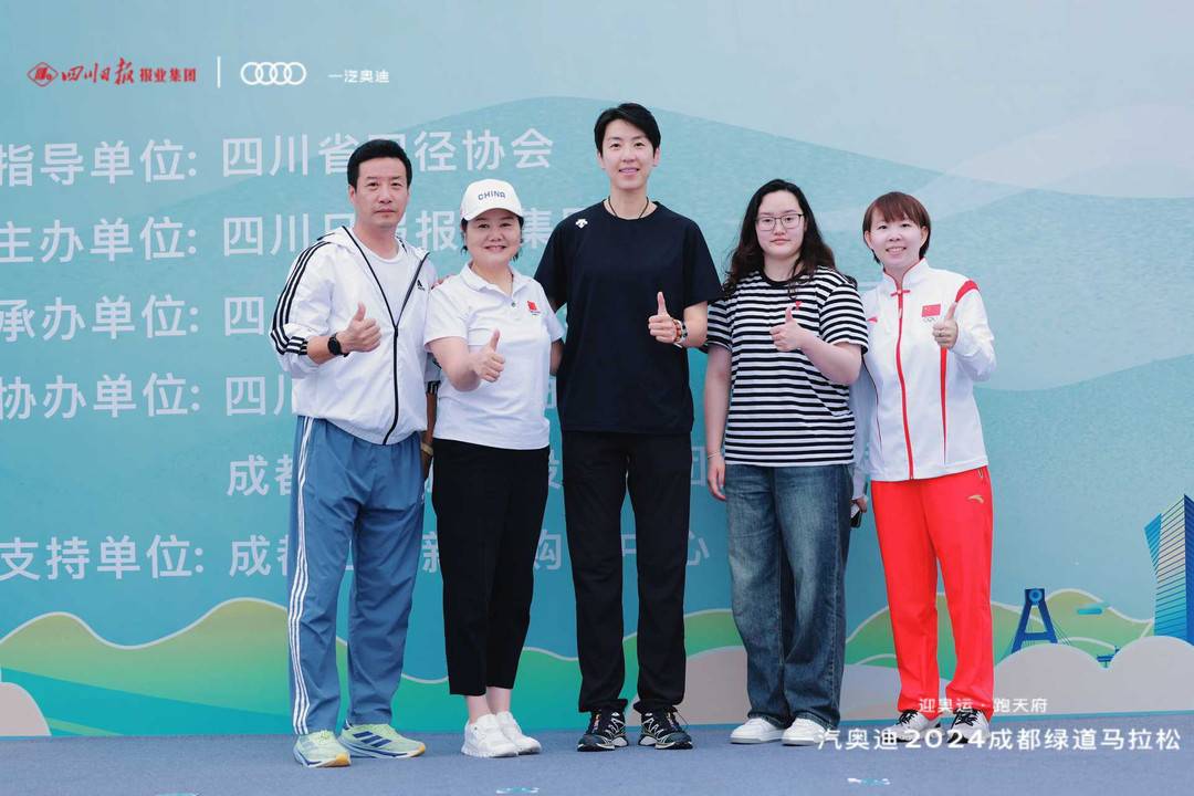 奥运是今年的关键词,本次绿道马拉松还邀请了多位川渝籍奥运冠军来到现场,其中包括射击奥运冠军张山、中国第一个“00后”奥运冠军任茜、女排世界冠军张晓雅、乒乓球世界冠军朱雨玲以及前国足球员邹侑根。他们在比赛现场分别担任了鸣枪嘉宾和领跑嘉宾,为选手们加油助威,并在现场的采访中分享了自己的运动经验和心得。