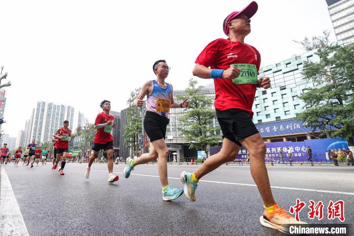 6月16日,2024贵阳马拉松赛在贵州省贵阳市观山湖区鸣枪开跑,赛事分为马拉松、半程马拉松、迷你马拉松,共吸引3.2万名选手参赛。图为参赛选手在比赛中。 中新社记者瞿宏伦摄