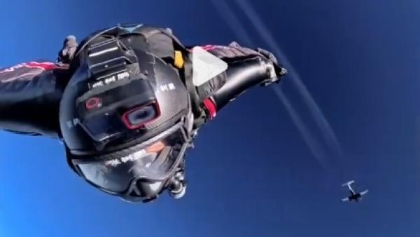 张树鹏在美国打破翼装飞行最长距离世界纪录