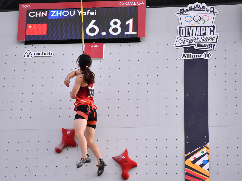 当日,在巴黎奥运会资格系列赛布达佩斯站女子攀岩速度赛预赛中,中国选手周娅菲、牛迪、张少琴、汪生艳全部晋级16强。