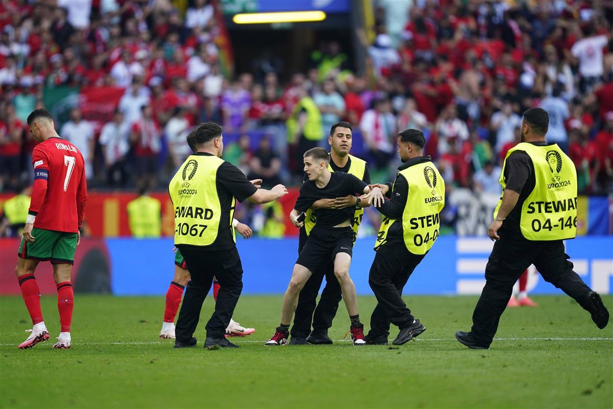 在葡萄牙与土耳其的比赛中发生了让人担忧的一幕,那就是球场的安全存在着漏洞。