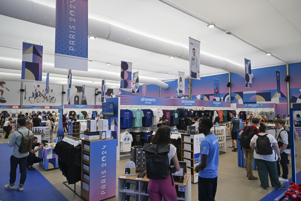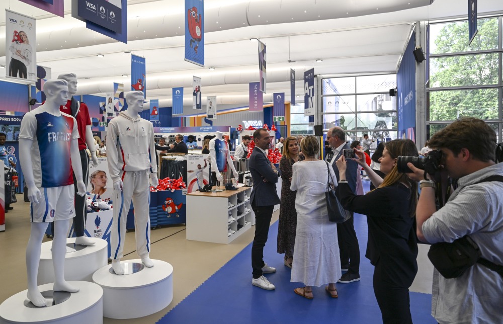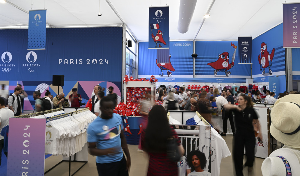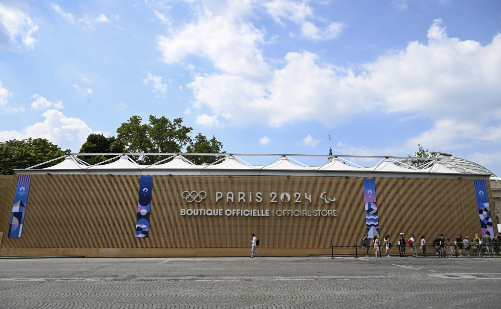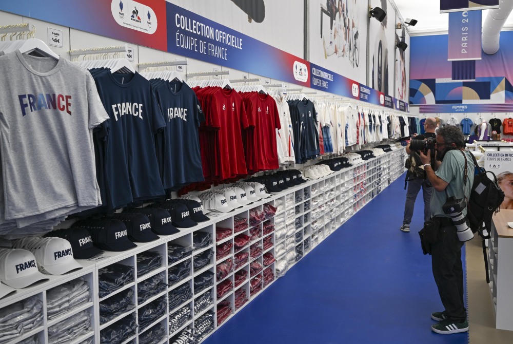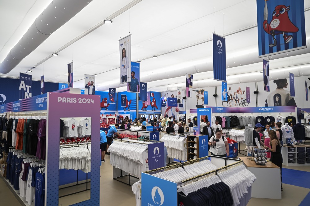当地时间27日,位于巴黎香榭丽舍大道的巴黎奥运会官方特许商品旗舰店开业迎客。据巴黎奥组委介绍,这家旗舰店是一个将近1000平方米的大型专营店,有超过1000种奥运特许商品供选购。
