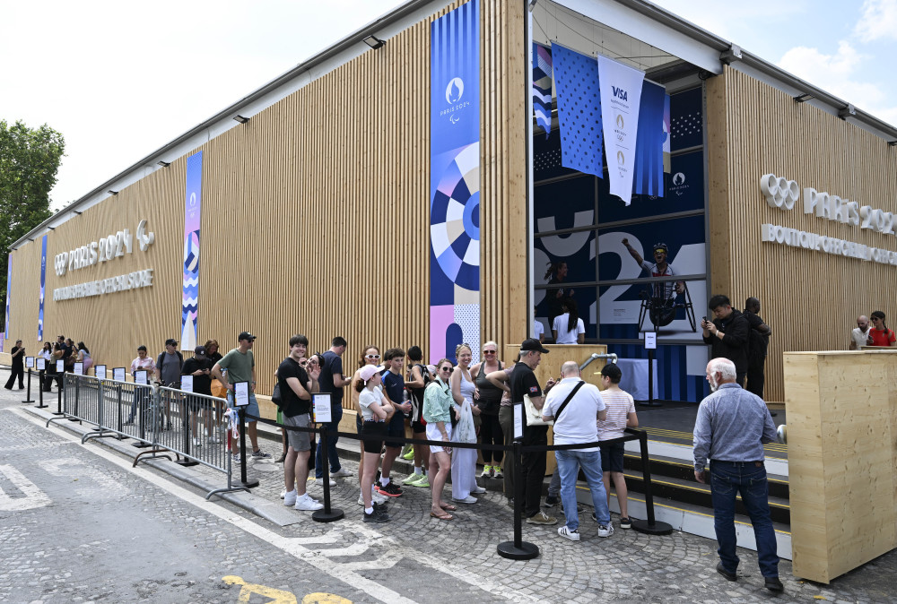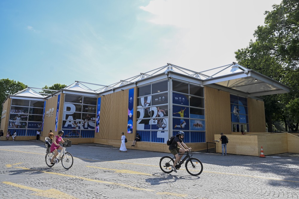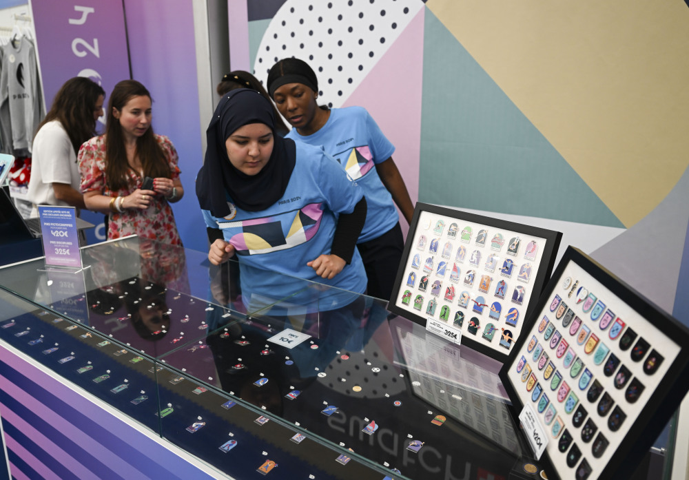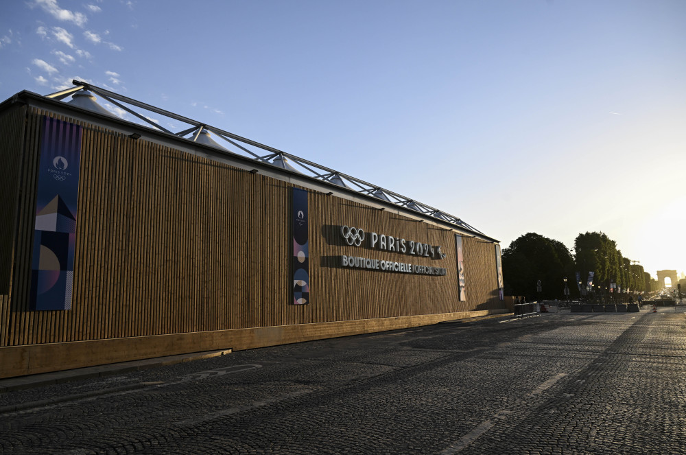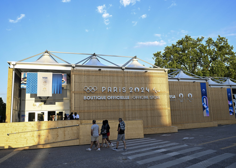 当地时间27日,位于巴黎香榭丽舍大道的巴黎奥运会官方特许商品旗舰店开业迎客。据巴黎奥组委介绍,这家旗舰店是一个将近1000平方米的大型专营店,有超过1000种奥运特许商品供选购。