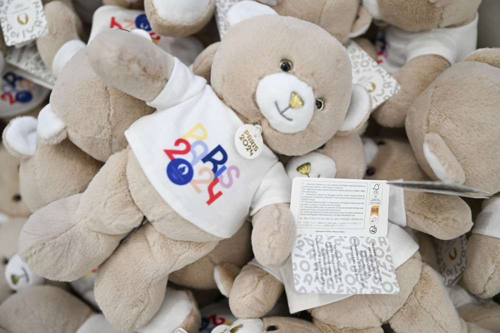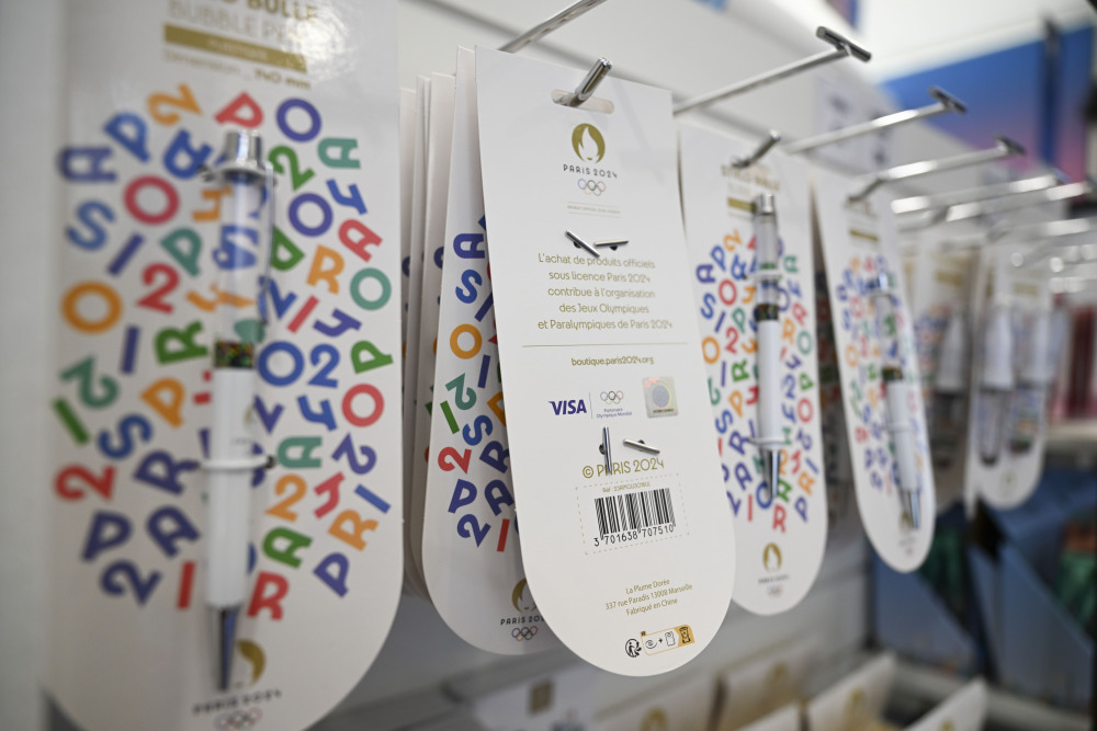 这是6月27日拍摄的巴黎奥运会官方特许商品,标签显示该商品由中国制造。新华社记者 贺长山 摄