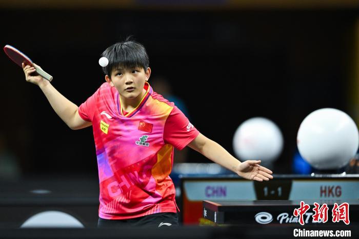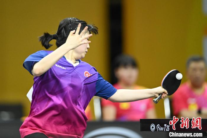 7月2日,在重庆市渝北体育馆举行的第28届亚洲青少年乒乓球锦标赛U15组女团决赛中,中国队3比2险胜中国香港队夺冠。图为中国香港队选手苏籽童在比赛中。 中新社记者何蓬磊摄