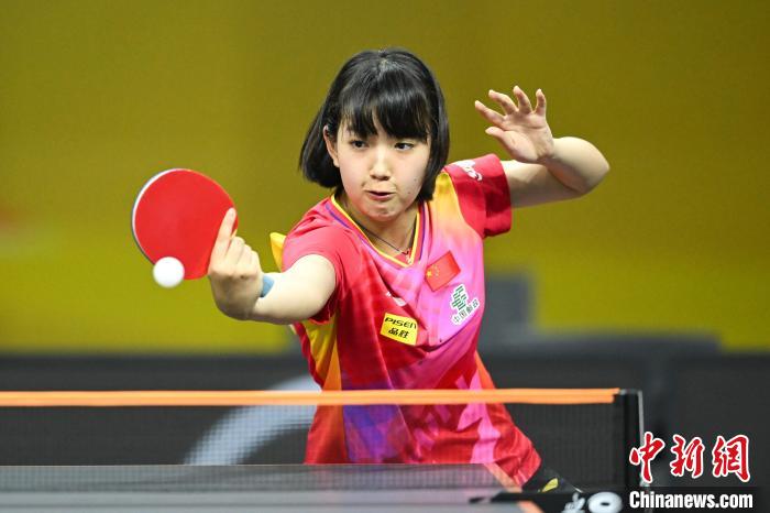 7月2日,在重庆市渝北体育馆举行的第28届亚洲青少年乒乓球锦标赛U15组女团决赛中,中国队3比2险胜中国香港队夺冠。图为中国队选手杨惠泽在比赛中。 中新社记者何蓬磊摄