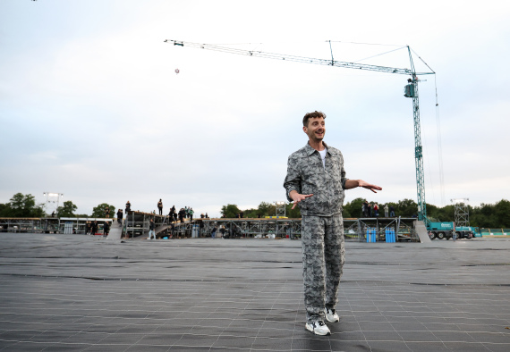7月3日,闭幕式导演托马斯·乔利在现场观看闭幕式彩排。新华社记者曹灿摄