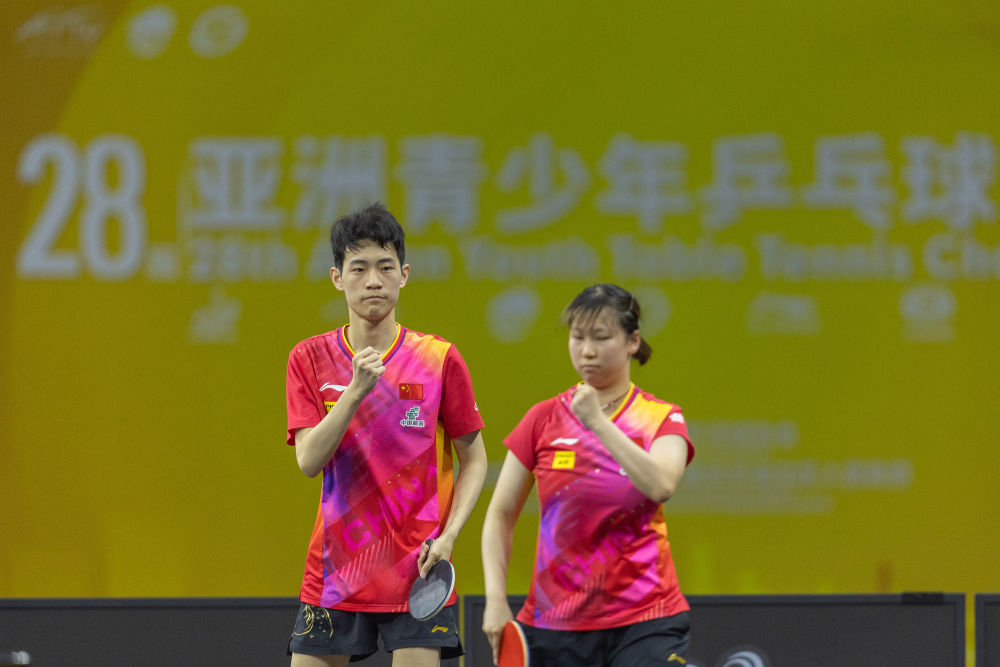5日在重庆进行的第28届亚洲青少年乒乓球锦标赛中,中国队陈俊菘/纵歌曼卫冕U19混双冠军,胡一、李和宸分别获得U15女子、男子单打冠军。
