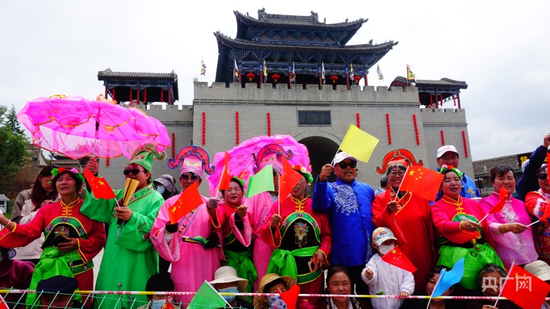 在湟源丹噶尔古城热情的观众为环湖赛加油(央广网记者张海东摄)