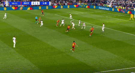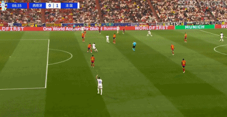 比赛开始后,西班牙队还是更活跃的一方,他们仍频频利用两个边路发起进攻。第5分钟亚马尔右路传中,鲁伊斯插到禁区后点在无人紧盯的情况下头球攻门,但却稍稍高出。