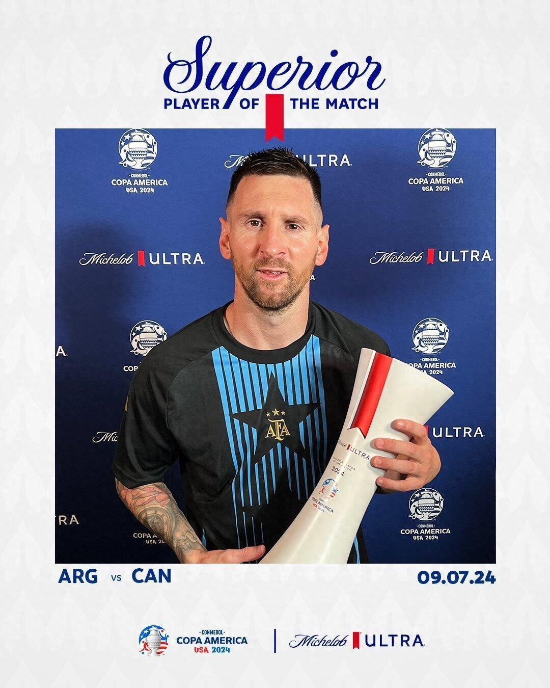 梅西本场打入个人本届赛事的首球,他也在赛后当选本场最佳球员。数据统计,梅西在六届美洲杯中均破门得分,阿根廷队距离美洲杯卫冕只差一场胜利,潘帕斯雄鹰此前曾7次参加美洲杯决赛,战绩为3胜4负。