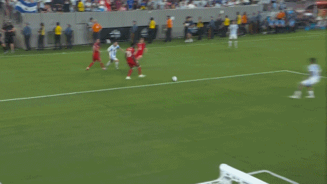 小组赛时两队就被分在一组,当时阿根廷队就以2比0战胜过加拿大队,本场阿根廷队再次以2比0胜出。上半场阿尔瓦雷斯破门,阿根廷队以1比0领先加拿大队,下半场恩佐射门,梅西伸脚将球蹭进球门,最终阿根廷队2比0拿下比赛。