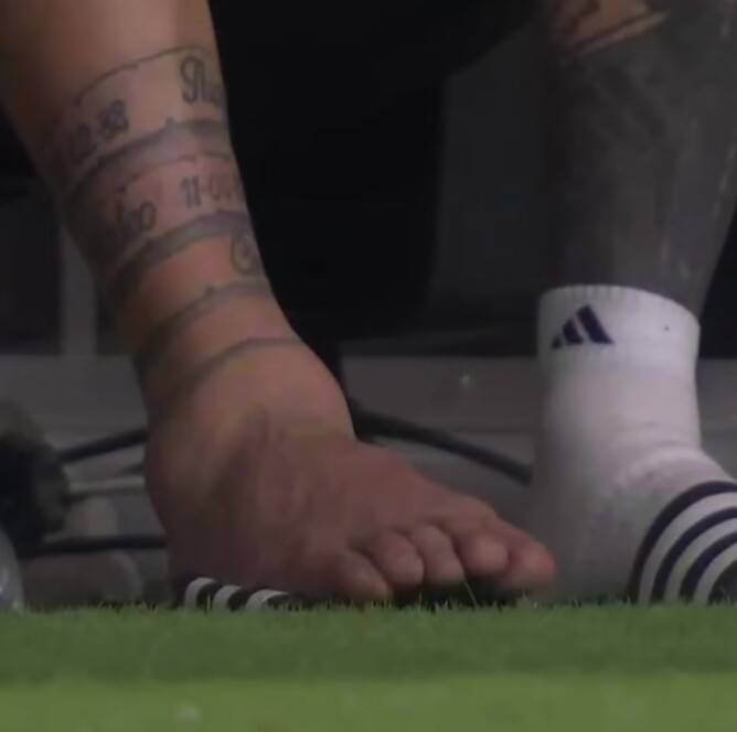 赛后根据阿根廷媒体拍到的照片,梅西的右脚已经肿胀变形,可见梅西在比赛中有多么拼命。