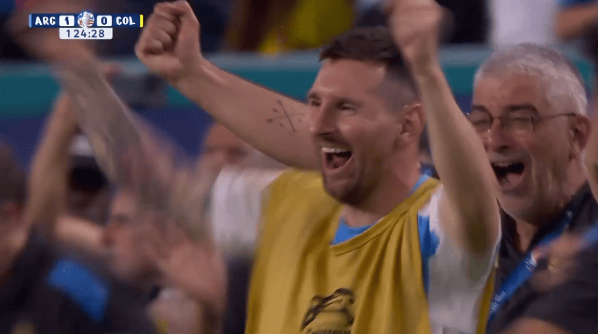 劳塔罗的进球让阿根廷球迷陷入集体狂欢,连替补席上的梅西都不能幸免,也从被换下时的悲伤转变为眉开眼笑。