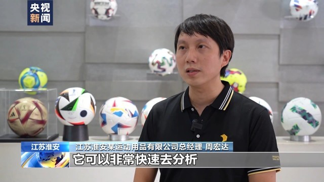 江苏淮安某运动用品有限公司总经理周宏达:将芯片安装在内胆当中,透过芯片的实时数据,可以非常快速分析场上所有球员的状态,比如采集球员的体能状态。