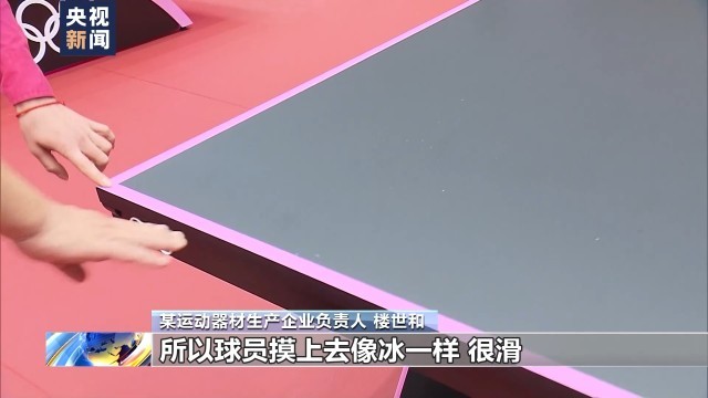 某运动器材生产企业负责人楼世和:表面有高分子特殊处理,球员摸上去像冰一样,很滑,是最新的技术。