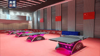 画面中的4张球台,就是将在2024年巴黎奥运会上使用的同款球台。球台以黑色为主调,粉色为配色,采用了彩虹状曲线底座。球台采用自带芯片的可变灯光系统,能呈现彩色灯光,在运动员出场和赛后,营造出独特氛围。