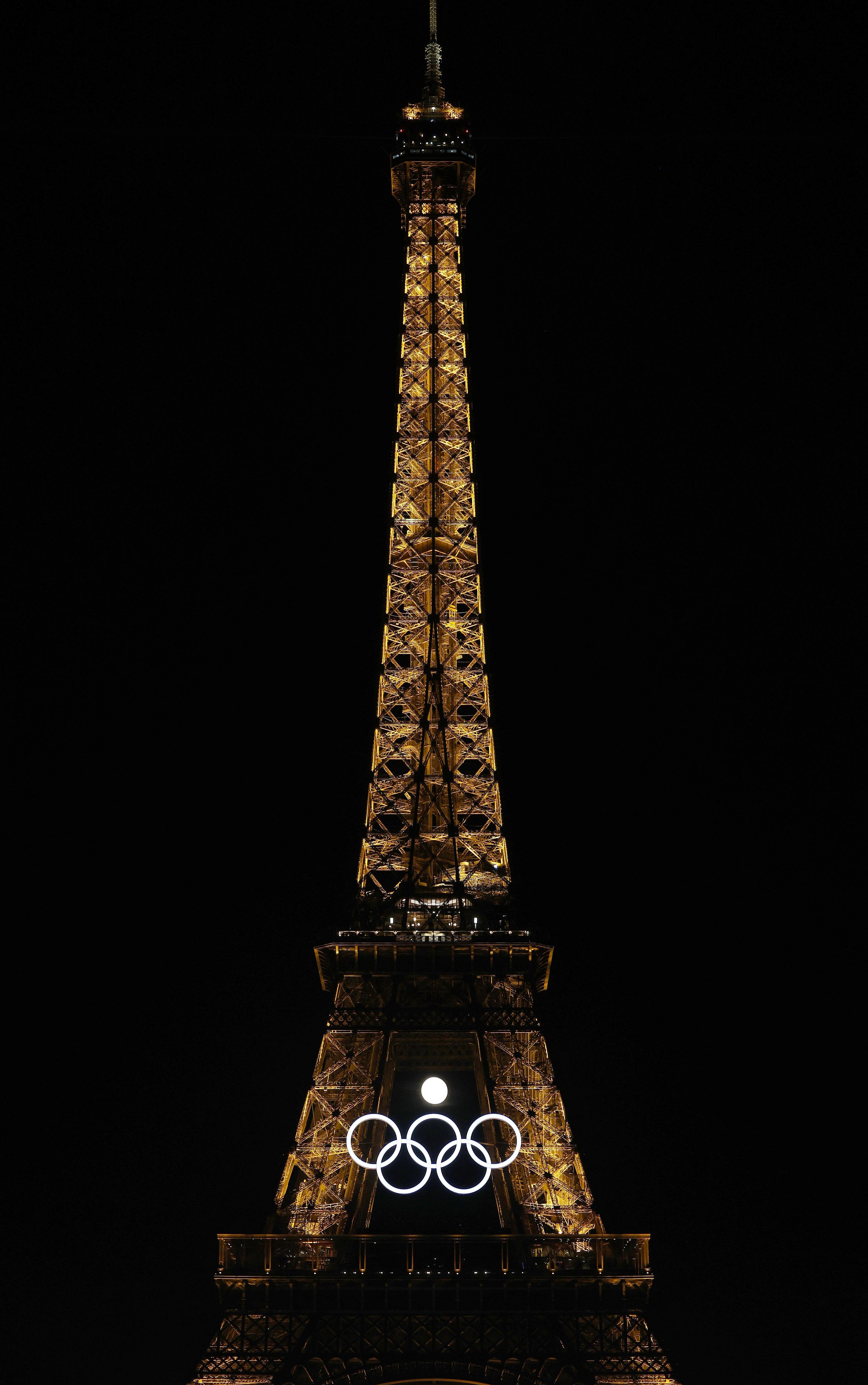 △已经镶上五环的埃菲尔铁塔静待开幕式的到来