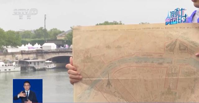 总台央视记者 郑怡哲:说起巴黎和奥运之间的关系,很多人可能知道,这已经是巴黎第3次举办奥运会,那么巴黎第一次举办奥运会是在1900年的时候,当时巴黎奥运会和世界博览会是同期举行的。那么现在我拿着的是在当地找到的1900年的巴黎地图,这张地图上就可以清晰看到塞纳河,从整个城市穿流而过,看着两边的建筑让我们有一种历史的穿越感。我们可以看到埃菲尔铁塔,荣军院,协和广场,这些地方都是此次入场巡游经过的地点。