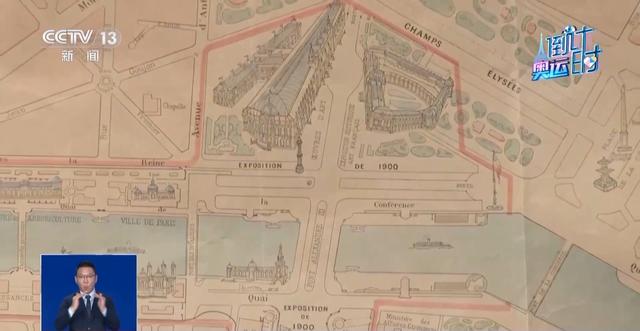 总台央视记者 郑怡哲:在这张地图上面还可以看到现在所在的亚历山大三世桥,桥北侧就是1900年为了世界博览会而新建的场馆,巴黎大皇宫。所以这也是巴黎大皇宫第1次出现在地图上。1900年就在塞纳河畔,这座宫殿第一次见证了各国运动员齐聚巴黎。
