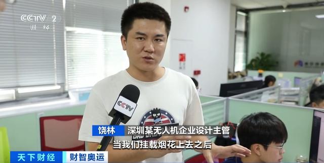 深圳某无人机企业设计主管 饶林:当我们将烟花挂载上去之后,要通过一些算法确定它的点位,如果烟花需要在第10秒时燃放,我们首先要保证飞机能在这个时间段到达点位并固定在这里,然后燃放起来。