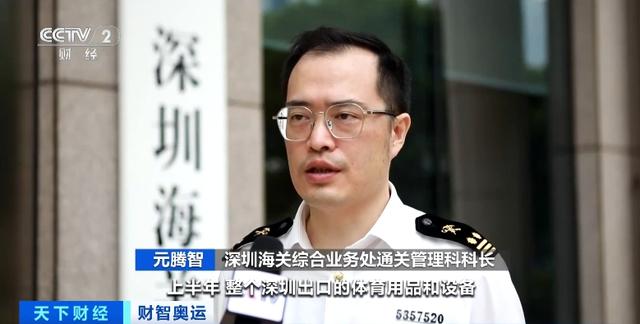 深圳海关综合业务处通关管理科科长 元腾智:上半年,整个深圳体育用品及设备出口货值达68亿元,同比增长71%,创历史同期新高。