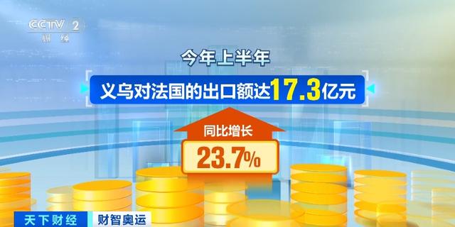 据义乌海关统计,今年上半年,义乌对法国的出口额达17.3亿元,同比增长23.7%,其中体育用品的出口同比增长了150.7%。