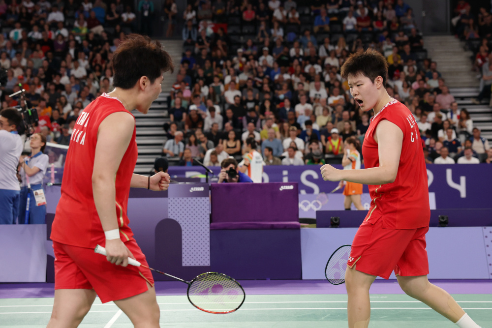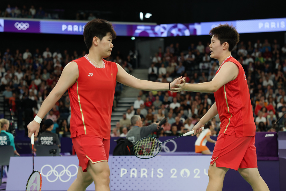 当日,在巴黎奥运会羽毛球项目女子双打小组赛B组比赛中,中国组合刘圣书/谭宁2比0战胜美国组合许忻霏/许怡霏。