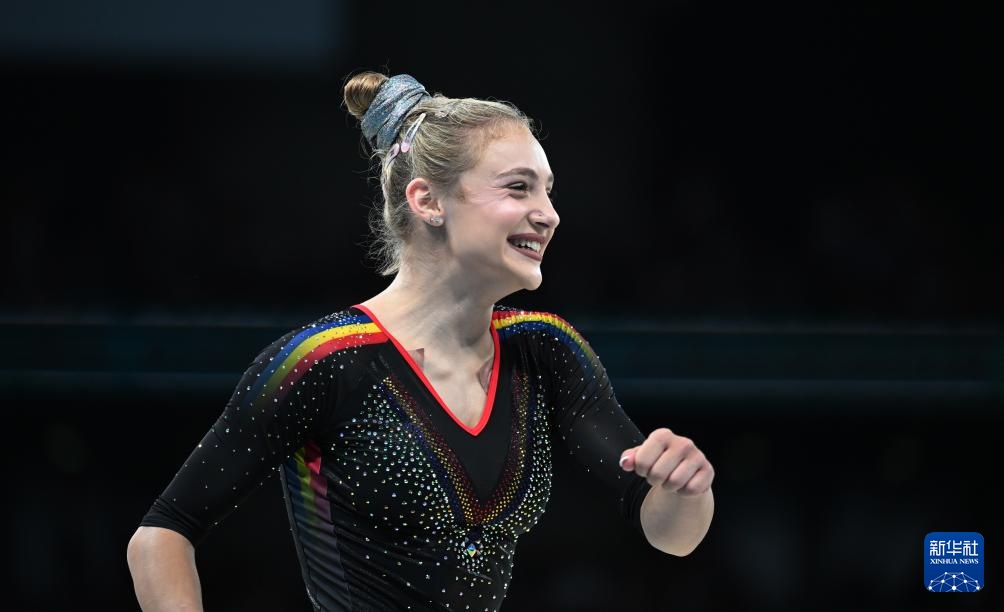 7月28日,罗马尼亚选手萨布丽娜·马内卡-沃伊内亚在平衡木比赛后。新华社记者 程敏 摄